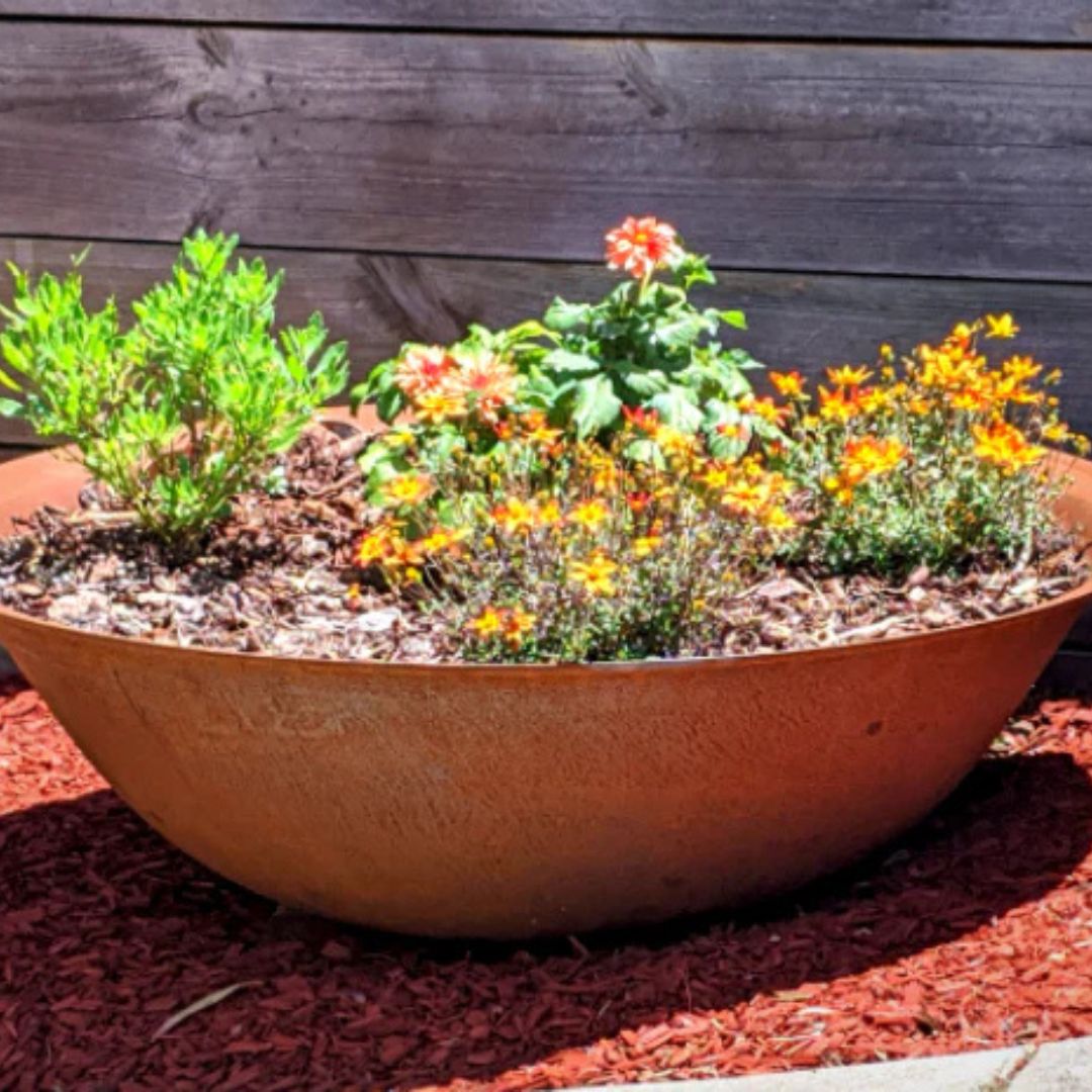 The Basin fire pit is a combination of the Goblet Fire pit and the Cauldron. It is a practical fire pit with a distinctive lip around the edge that makes it easy to grip when moving or carrying it. It's simple open design will always look like a piece of art and can double up as a rustic planter in the warmer months.